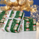 Add a unique touch to your seasonal holiday present with this owl-themed striped Christmas wrapping paper. The gift wrap has a cute watercolor owl wearing a red Santa Claus hat. The background has snowflakes and green and white stripes. There are two custom repeating personalised text areas -- one has your family name, and one has the text Merry Christmas. Both areas may be edited per your preference.