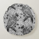 Owls in the oak tree, black and white round cushion