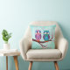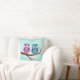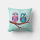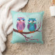 Owls Love in Spring Cute Cartoon Birds on Blue Cushion
