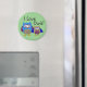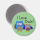 Adorable magnet for anyone who loves owls! Cute illustration of a colorful mother and baby owl with "I love owls!" message above them. Springy green background makes this magnet a colorful addition to a kitchen or workspace.