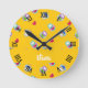 Owls with hearts on orange round clock