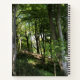 A beautiful forest woodland view, with the greenery from tree foliage and browns of mature tree trunks that line a pathway through the woods. Mother Nature at her best, with sunbeams sending shafts of light through the branches of mature trees in full leaf, brightening the forest glades. Nature themed notebook with colour photograph of woodland in sunlight. A lovely gift for someone in which to keep their thoughts and notes. Add the name of the recipient.