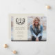 A formal but modern graduation photo announcement to celebrate those obtaining a Juris Doctor degree. Featuring a full-bleed photo with a colour overlay and law scales (with the 'JD' abbreviation) surrounded by a laurel wreath. The template text for the graduate’s details is completely customisable, so the font size, style, colour and placement can be changed. The back features a solid coloured background and template text for a longer message. If you would prefer to include no text on the back, just delete it before ordering. If you would prefer a photo on the back of the card, delete both the coloured background and the template text and upload your own photo. The design is available in other colours in my store.