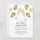 Elegant, chic & Modern Oyster Roast engagement party invitation featuring hand-painted watercolor champagne glass and oysters. Perfect for summer and beach engagement parties.