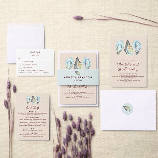 This elegant oyster-themed wedding details enclosure card is the perfect complement to a coastal or seaside wedding invitation suite.