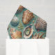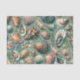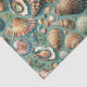 This watercolor bivalve and seaweed design features an abundance of oysters, clams, and other seashells against a green background.