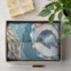 This watercolor oceancore aesthetic design features oysters, clams, and other seashells against a slate blue background; a shimmery pattern of bivalve sea creatures for nautical, coastal, and sea shell lovers!