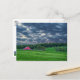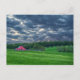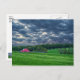Postcard featuring - Beautiful clouds move in during sunset time over this farm in the Ozarks. Located in Springfield Missouri, United States, the red barn pops out among the beautiful green grass and trees with the dark blue sky. Looking for more prints or products? Feel free to visit my store: http://www.zazzle.com/timelessmomentsphtgy