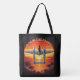 This beautiful tote bag of the P-38 Lightning, with a view from the top-down perspective, features it flying over a vivid tropical sunset during World War II in the Pacific Theater of Operations. The "fork-tailed devil" soars above palm-lined islands and glimmering ocean waters brings to mind many historic aerial battles across the South Pacific. This handy carryall can be used for toting groceries, books, laptops, gym gear, beach or park essentials or many other things that you need to have "portable."