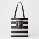 P Gold Floral Monogram | Black White Gold Stripes Tote Bag