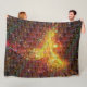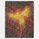 A blanket featuring a phoenix done in a mosaic design comprising all 26 mythological creatures from the children's picture book P is for Phoenix.