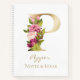 P Letter Gold Monogram Pink White Magenta Florals Notebook
