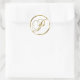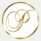 P Monogram Faux Gold Envelope Or Favour Seal. These classic round stickers are printed with non metallic ink on a flat sticker to look like gold. They are not beveled or embossed monograms but are designed to look like they are beveled or embossed monograms. These gold monogram seals are printed on a white background unless you select a different colour background before you proceed to checkout. In addition to being pretty wedding stationery supplies, these elegant wedding invitation envelope seals also make great monogrammed custom Christmas card seals, personalised holiday greeting card envelope seal stickers and customised Xmas card monogram seal stickers.