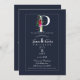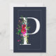 P Monogram Last Initial Modern Blue Floral Wedding Invitation