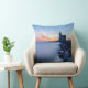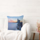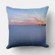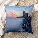 Photo throw pillow cushion with the Paard van Marken lighthouse during a blue sunrise on a very cold winter morning with ice on the wavebreaker rocks and motion blurred water of IJsselmeer lake on Marken Island, the Netherlands, creating a very moody atmosphere.
