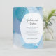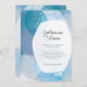 This unique wedding invitation features abstract watercolor in teal-blue hues.