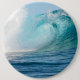 Button of a big surfing wave breaking in the Pacific Ocean.