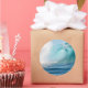 Round photo sticker of a big surfing wave breaking in the Pacific Ocean.