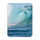 Vertical photo magnet of a pacific big surfing wave breaking on a reef with a lot of spray showing freshness and energy.