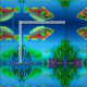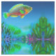 Original fine art design of a Pacific coral reef Parrot fish by artist Carolyn McFann of Two Purring Cats Studio printed on quality cotton fabric for saltwater fish fans.