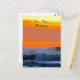 This beautiful postcard shows a spectacular, colourful sunset photo taken from a peaceful beach in Ocean Shores, Washington.  Layers of clouds give the impression of an abstract painting.   Orange, grey, blue, and yellow pastel hues are soothing  and inspiring.  The village of Ocean Shores boasts miles of gently sloping  sandy beaches.