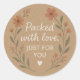 Add a warm and thoughtful touch to your packaging with this charming round kraft-style sticker. Featuring delicate floral illustrations and the phrase "Packed with love, just for you" in elegant handwritten fonts, it’s perfect for small businesses, handmade goods, gift wrapping, or bakery treats. Ideal for thank you labels, customer orders, and personalised packaging.