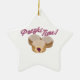 A quality product. Very nicely printed which wraps around the edge with a plain back. Not at all to heavy to fall off that tree branch. The printing seems crisp and robust enough to last for many a Christmas.