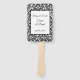 This paddle fan is shown with a lovely black and white damask print with sample names and date.