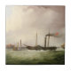 The painting depicts a paddle steamer off Perch Rock in the Mersey. The paddle steamer in the painting has always been thought to have been the "Ariel". There is also discussion about whether the painting is the PO steamer Ariel or not. The Ariel was a paddle steamer that continued to be the Dover packet until 1846. The Ariel arrived in Aspinwall on May 10 with treasure and passengers. The Ariel was captured by the Alabama in 1863