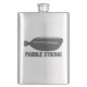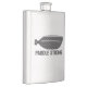 The product is a good size and came exactly as it was pictured. The lid is not attached to the flask, which could be dangerous on drunken nights... The print came out surprisingly well and looks very sharp. Would definitely recommend.
