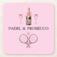 PADEL COASTER: PADEL & PROSECCO CLASSIC PINK/BLACK SQUARE PAPER COASTER