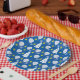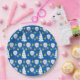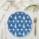 This 9" round paper plate features a delightful blend of holiday spirit and sporty fun! Set against a deep blue background, it showcases a festive pattern of white padel rackets, icy snowflakes, stylised Christmas trees, and bright green padel balls doubling as ornaments. The green padel balls add a unique, quirky touch—like they’re ready to be lobbed into a winter wonderland!