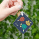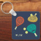 Create a personalised gift for your favourite padel player. This keychain features illustrations of padel rackets and balls in shades of terra cotta, gold and teal against a navy blue background. It's ready to be personalised with monogram initials in cream.