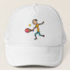 Padel Tennis player plays the ball in a fun design showing player, padel racket and ball.