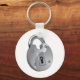 A padlock is a good way to keep something secure and this design is of a really secure looking padlock. This metal grey padlock is operated by a key and has a strong looking looking mechanism. This padlock design looks great on this keychain. Perfect for yourself or as a gift