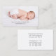 An adorable baby photo paediatrician business cards in a modern style. Add your own newborn photo on a plain background so that type overlay can be viewed. Modern professional style.