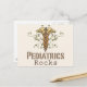 Paediatrics Rocks with a caduceus and olive green floral graphic print on clothing, stationery and more medical merchandise. A cool and hip paediatrics gift for a doctor, paediatrician, medical student, resident, pre med student, physician's assistant, intern, attending or the family and staff of a physician. A cute Doctor's Day or medical school graduation present. Studios, LLC.