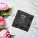 This lovely, elegant look paper napkin is shown in the black colour with silver foil stamping, shown with a Miss America style crown and shown with sample text of the title holders name and date.