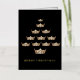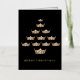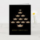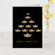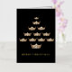 Pageant Crown Christmas card is shown with a black background and pretty gold crowns in a shape of a tree.