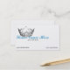 Shown in a standard size business card but on pearl card stock with a light shimmer. It has a sketch of a crown in Grey coloured penciled in print along with large off-centred text in script, a place for your title, phone and email on the front. Back has place for your address, hours and appointment time. Customise this to our liking.