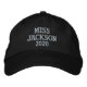 Shown in black with a soft pale blue colour. This cap has front text only shown with your title and year crowned. Adjustable back.