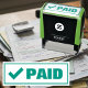 ✔ Paid green check mark tick business office invoice self-inking stamp. Handy for official documents, paying shopping bills, open invoices, debts, receipts, money owed and private papers. Personalised school and office supplies. Stylish border and modern typography template. Custom logo sign stamps for teacher, office worker, business employee, coworker, boss, corporate company manager, job, staff, personnel, etc. Red, black and blue ink also available.