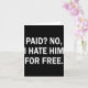 Paid No I Hate Him For - Funny Sarcasm Card