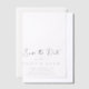 Modern wedding save the date featuring a simple design with your details at the bottom.