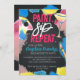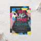 Throw a fun girls night with a paint and sip bachelorette party filled with colours and lots of adult beverages. Design features typography "paint. sip.repeat" as well as details you can simply customise with your name and party info against a chalkboard background. Featuring paint splatters complete with yellow, red, and blue paint splatters as well as hand painted paint palette, paint brush, and glass.