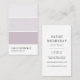 Cleverly designed vertical business cards mimic the look of a paint chip card, with three rectangles in ombre gradient shades of greyed lilac lavender. Personalise the front with your name and title, occupation or business name, and add your full contact information to the reverse side. A chic choice for interior design professionals, decorators, and painters. To change the colour of the paint chips, click "Customise" and select a new background colour from the palette, or enter a custom hex code. Colours will automatically update in three coordinating shades.