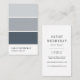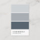 Cleverly designed vertical business cards mimic the look of a paint chip card, with three rectangles in ombre gradient shades of grey, slate and dusty blue. Personalise the front with your name and title, occupation or business name, and add your full contact information to the reverse side. A chic choice for interior design professionals, decorators, and painters. To change the colour of the paint chips, click "Customise" and select a new background colour from the palette, or enter a custom hex code. Colours will automatically update in three coordinating shades.