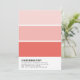 Cleverly designed housewarming party invitation mimics the look of a paint chip card, with three rectangles in ombre gradient shades of peach and coral. Personalise with your housewarming party details beneath in modern black lettering. To change the colour of the paint chips, click "Customise" and select a new background colour from the palette, or enter a custom hex code. Colours will automatically update in three coordinating shades.