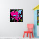 This retro poster features a colorful paint splatter with a pink heart and blue arrow on a black background.