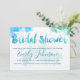 Bridal Shower Invitations Vintage Watercolor Typography with Trendy Whimsical Font in Shades of Blue. Perfect for the Beach Destination Wedding.